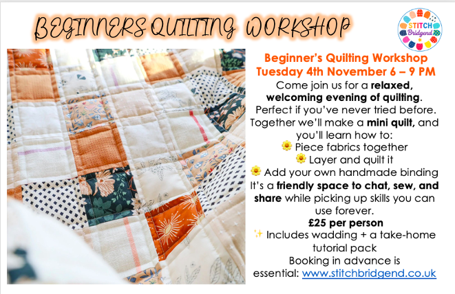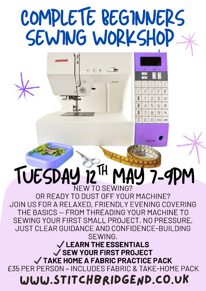 At Stitch Bridgend, we believe sewing should be fun, friendly, and accessible for everyone. Our adult workshops are designed to be relaxed, supportive, and welcoming.. whether you’re a complete beginner, picking up sewing again after a break, or looking to grow your skills.