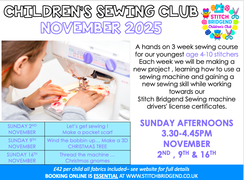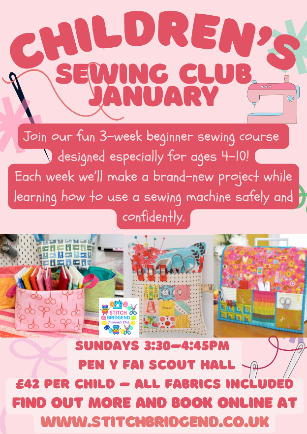 Every session is taught voluntarily by a registered, insured professional tutor, so you can feel confident your child is learning in a safe, supportive environment. Now in its 12th year, Stitch Bridgend’s Children’s Club has helped hundreds of local children discover creativity, independence, and the joy of making something of their very own.