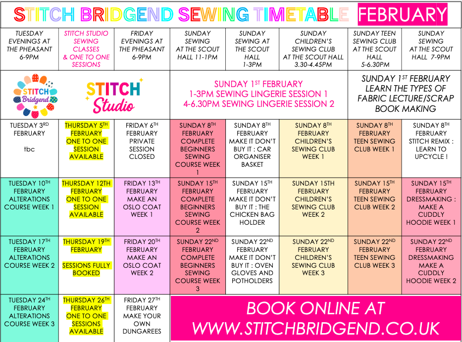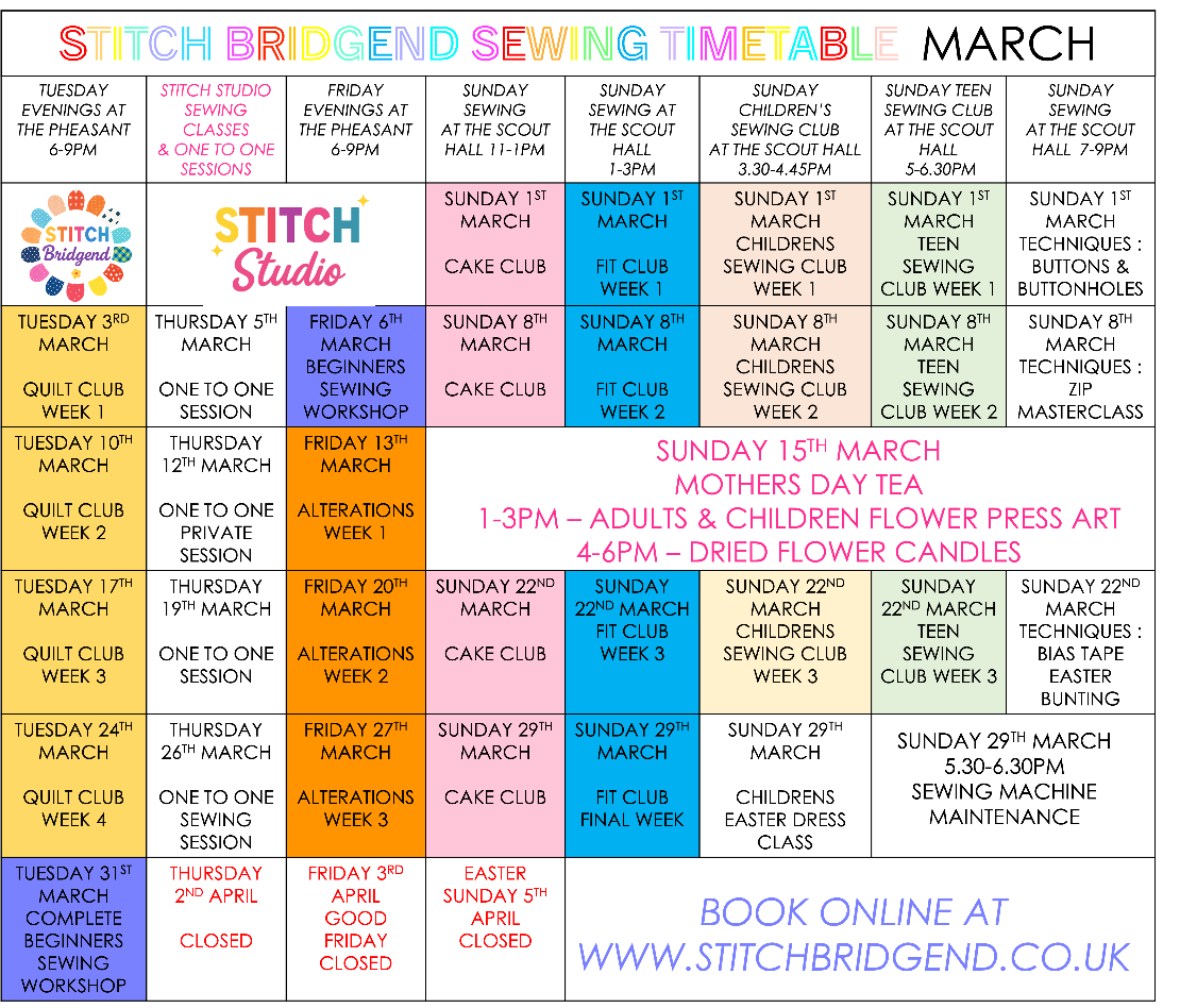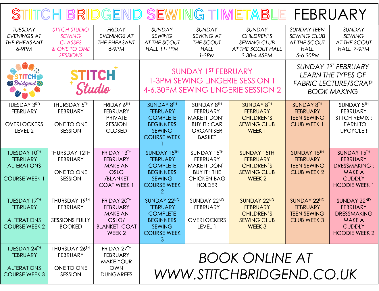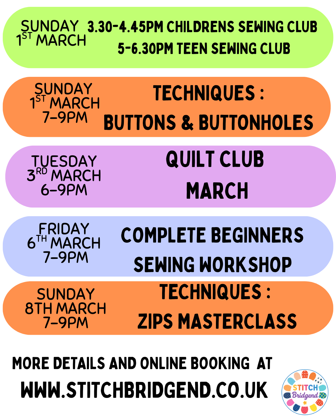 If we at Stitch Bridgend need to cancel a class for any reason a credit code refund will be emailed to you to use against future classes/workshops.