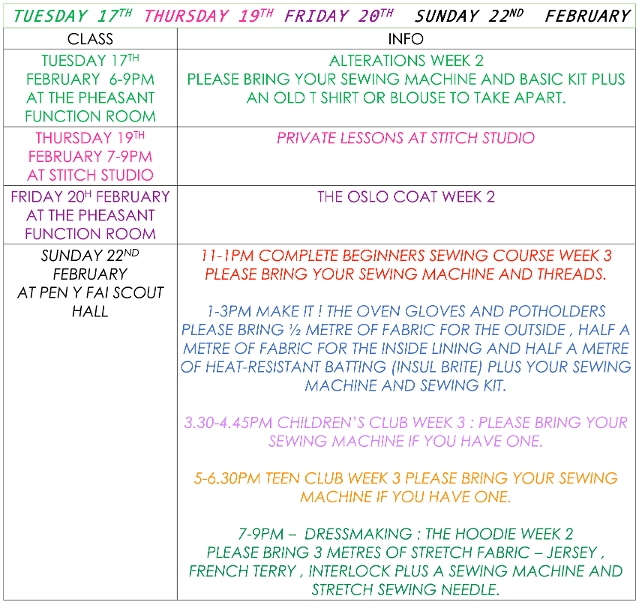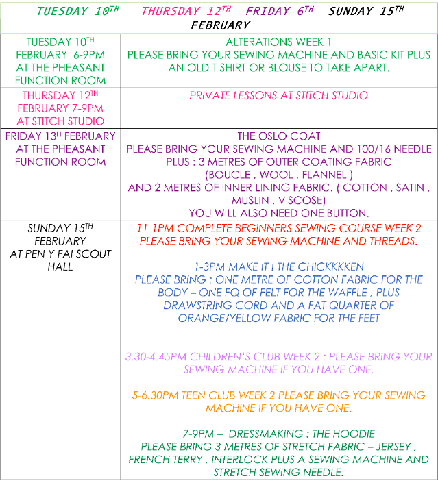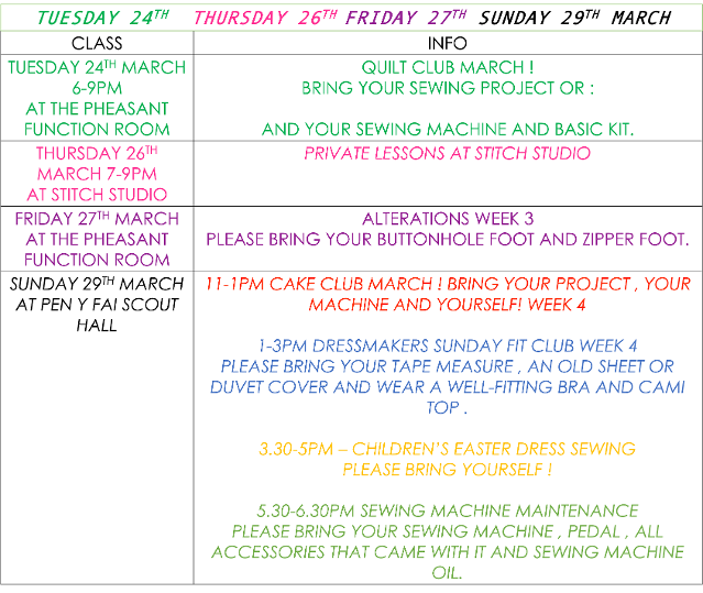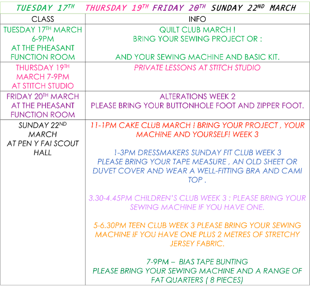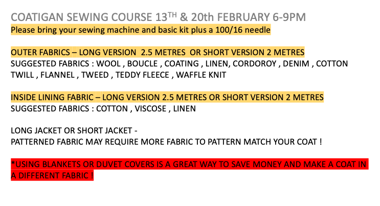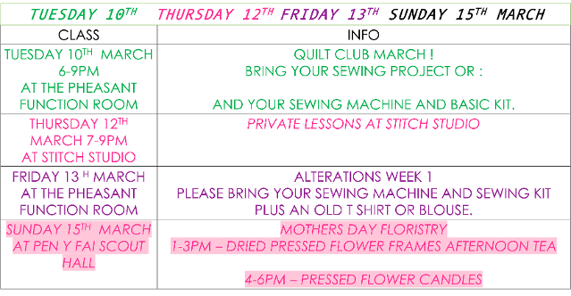 **Please bring spare footwear in wet weather - The car park can get very muddy and wet shoes and sewing machines do not mix**